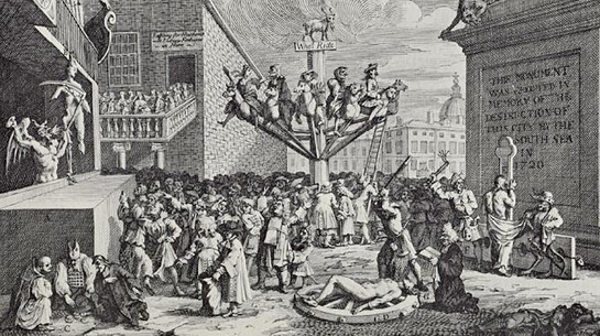 1720年,為了刺激股票發行,南海公司接受投資者分期付款購買新股的方式。投資十分踴躍,股票供不應求導致了價格狂飚到1000英鎊以上。公司的真實業績嚴重與人們預期背離。 后來因為國會通過了《反金融詐騙和投機法》,內幕人士與政府官員大舉拋售,南海公司股價一落千丈,南海泡沫破滅。