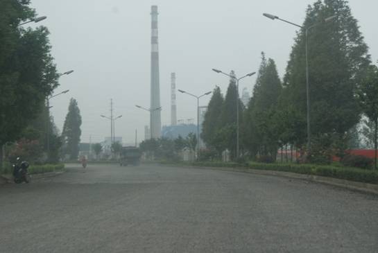(永安藥業老廠到新廠的路上,空氣中粉塵彌漫。據稱開發區的粉塵問題是 主干道在維修所形成的揚塵。 )