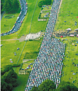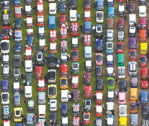 圖為有2500名迷你車主,前往英國南部海濱途中的壯觀景象,如此密集的排列,對車技也是一種考驗。