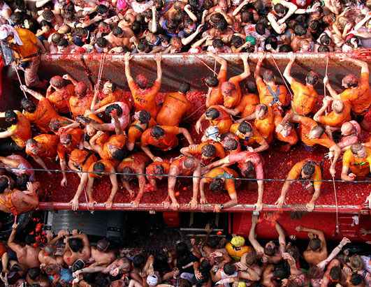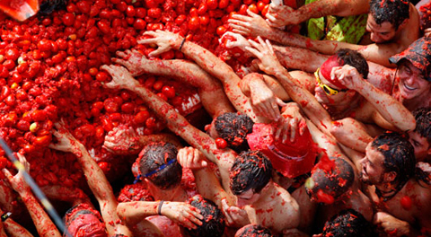 網絡版專稿 記者 鄧美玲 每年,在八月的最后一個星期三,成千上萬的人會來到西班牙的布尼奧爾參加當地有名的傳統節日“番茄大戰”。超過一百噸的熟透了的番茄被用來當投擲武器。