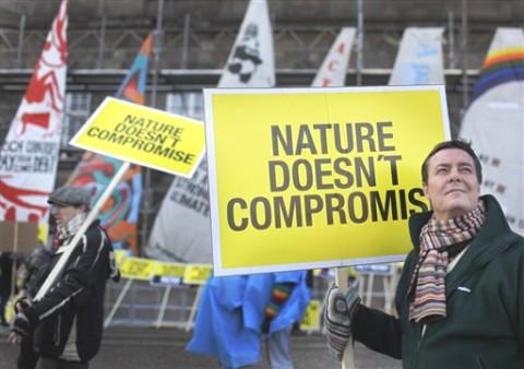 哥本哈根無疑成為了氣候變化全球行動日的焦點之地。周六,多達八萬人涌上哥城的街頭,步行四英里來到氣候變化全球峰會的會場。但在游行后期,有示威者向路旁建筑投擲石塊和碎玻璃,丹麥警方不得不出動防暴警,逮捕了600多人。