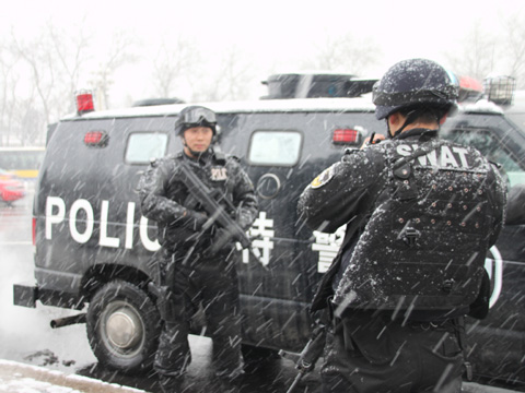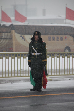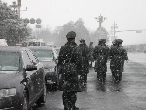 兩會實拍:雪中守衛