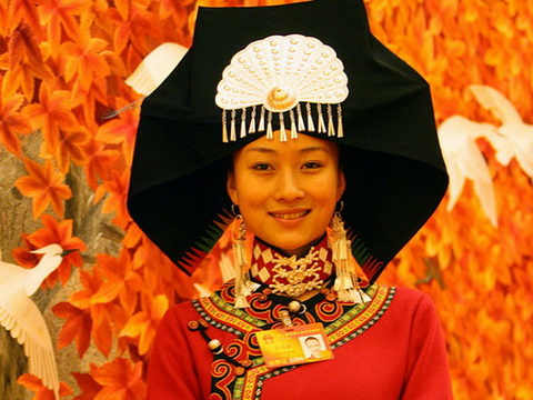 我又問張蓓蓓,你每天開會,腦袋上都頂著這么大的一個東西(她說她是白彝,穿的是彝族服飾)累不累?