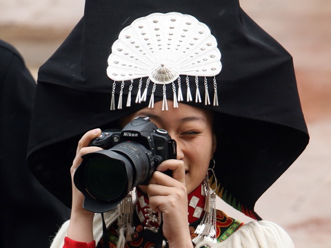 接下來的談話,始終為旁人所擾,我也只好跟他們一樣拿起相機,留下張蓓蓓這位彝族美女令人驚艷的容顏。