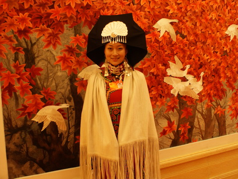 跟大會堂外面的風雪交加相比,西大廳里溫暖如春,巨大而華麗的吊燈、柔軟而舒適的地毯,我仔細的用長焦鏡頭搜索著這位“傳說”中的彝族美女。