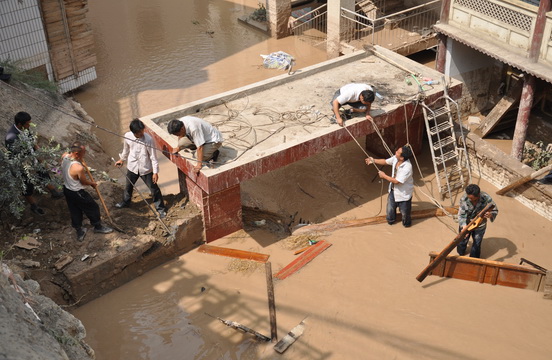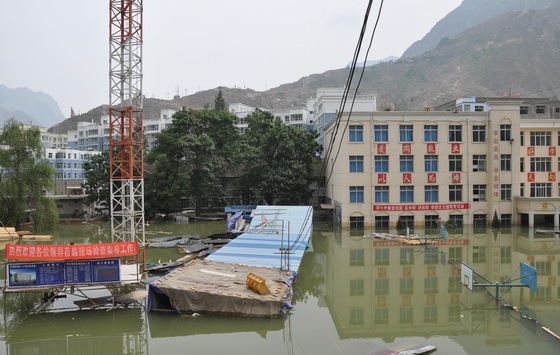 8月11日,舟曲縣城關第二中心小學仍然浸泡在水里,由于臨近開學,學校會因此無法按時開學。記者 陳勇/攝