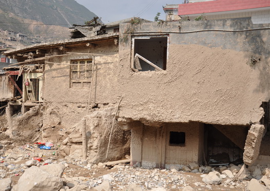 8月9日,受舟曲泥石流事故影響,該縣三眼村的許多房子被泥石流所淹沒。記者 陳勇/攝