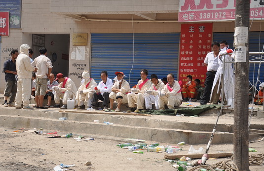 8月10日,舟曲縣瓦場,醫療隊伍在連續工作后小憩。記者 陳勇/攝