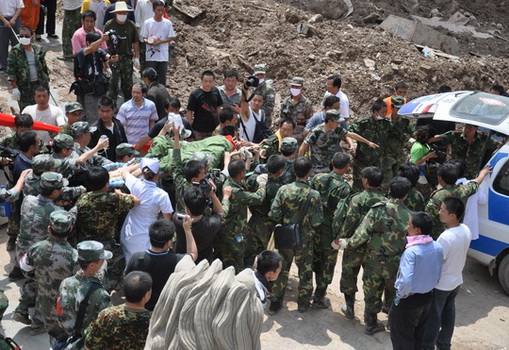 8月9日,在搜救工作進行了50個小時后,第一個幸存者被四川廣元救援部隊救出,并送往醫院進行救治。記者 陳勇/攝