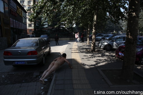 “區式俯臥撐”作為其藝術符號和敘事方式,是通過對接介入標志性人文景觀或節點性社會事件的發生地,實現對社會的干預與記錄。區志航在一篇博文中表示“希望大家都來做‘區式俯臥撐’——積極關注和思考我們的國家與社會?!痹诖笮蜕鐣侣劦默F場,經常能看到“區式俯臥撐”的身影。