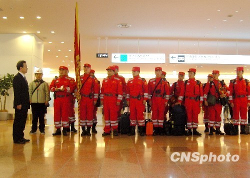 3月13日中午12:20分,中國國際救援隊抵達東京羽田國際機場,隨后趕往重災區。救援隊15名隊員均有豐富的國內外救災經驗。