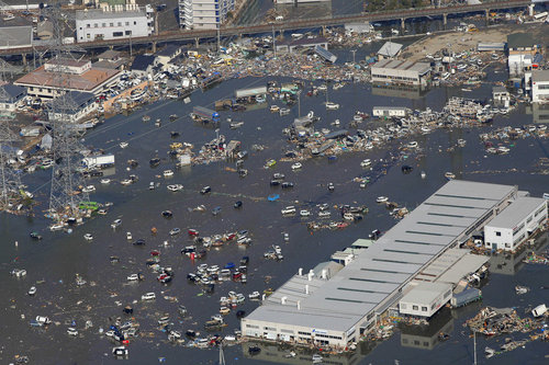 2011年3月12日,日本仙臺,部分城鎮被淹沒。