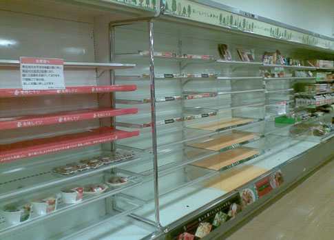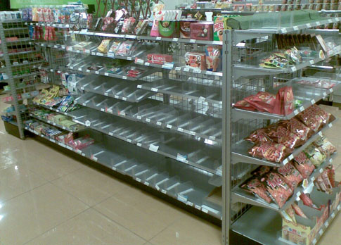晚間九點 超市食品里貨架上已經所剩無幾 攝影/張斐斐