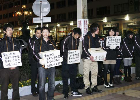 日本新瀉街頭一群日本學生在自發的舉行募捐。
