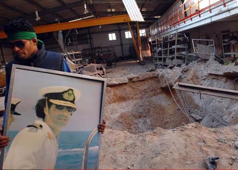 2011年3月22日,利比亞的黎波里,被炸毀的軍事設施。西方國家21日晚對利比亞采取了第三輪軍事行動。利比亞電視臺說,當晚的空襲致大量平民傷亡。