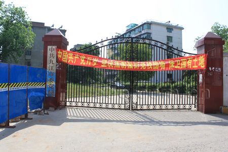 經濟觀察網 記者 張雅楠 今日,一則“強拆面前人人平等,江西九江市委黨校照樣遭遇強拆”的消息在論壇和微博上流傳開來,九江市委黨校門口掛起了一個紅色條幅,上書“中國共產黨萬歲 堅決抵制強拆黨校圍墻 保衛國有土地”,該條幅并未掛在黨校的正門,而是掛在一個側門上,側門旁邊是藍色施工擋板,擋板內的工地上有少量工人正在施工。