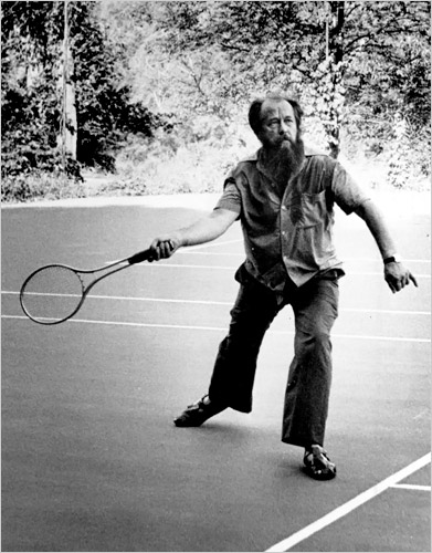 1975年,隱居在大學校園里,化名卡文迪許,正在打網球的索爾仁尼琴。