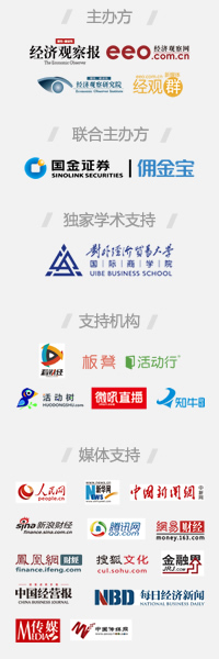 剛才我介紹了我們兩重好禮,實際上我們還有第三重好禮,就是我們本次的多家贊助商,待會兒我們會有非常精采的抽獎環節。獎品我先跟大家公布一下,分別是經濟觀察報價值158元的閱報卡10張;由巨剛眾酒提供的龍泉哥窯斗笠杯,價值188元有6個;由樂跑提供的電子稱499元以及樂錢提供的價值500元的10名充值卡。我們所有的觀眾到場之后都手持一個號碼牌,所以請大家持好號碼牌,因為在稍候的抽獎環節將會以這個號碼牌為依據。同時要感謝對外經貿大學國際商學院、美通社、板凳會、看財經、活動樹、微吼直播、MAKA等合作伙伴對本活動的大力支持。